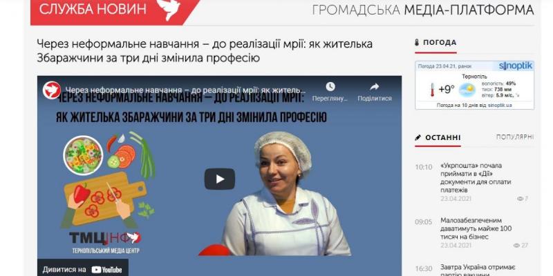 На першому громадському інтернет-телебаченні ТМЦ.Інфо (громадська медіаплатформа - Тернопільський медіацентр) 22.04.2021 вийшов сюжет про організацію Тернопільською обласною службою зайнятості підтвердження результатів неформального навчання на прикладі Збаразької райфілії ОЦЗ.