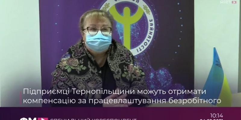 На телерадіоплатформі «Файне місто ТV» у програмі «Спеціальний кореспондент» 04.02.2021 - інтерв'ю із начальником відділу організації надання послуг роботодавцям Тернопільського обласного центру зайнятості Наталією Косенко. Мова йшла про працевлаштування безробітних на нові робочі місця з виплатою роботодавцям компенсації єдиного соціального внеску та компенсації зарплати за працевлаштування ВПО.
