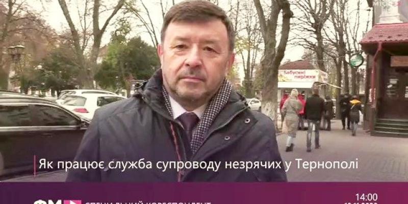Сюжет «Файне місто ТV» 19.11.2020 про те, як працює служба супроводу незрячих у Тернополі. Коментар директора Тернопільського міськрайонного центру зайнятості Анатолія Куриляка про організацію громадських робіт для допомоги незрячим людям.