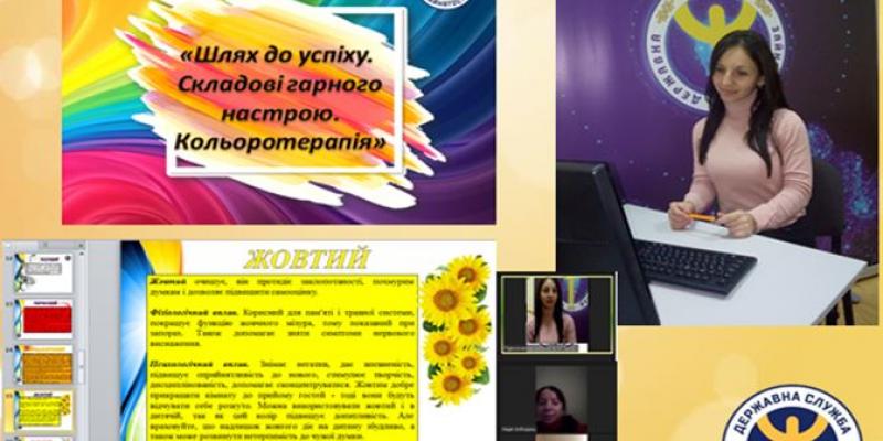 «Шлях до успіху. Складові гарного настрою. Кольоротерапія», таку тему обговорили на засіданні жіночого клубу «Надзбручанка» у Підволочиській районній філії Тернопільського обласного центру зайнятості. Зустріч провели фахівці райфілії ОЦЗ за допомогою онлайн-сервісу «Zoom».
