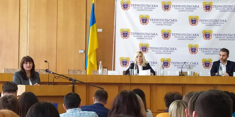 Заступник директора Тернопільського обласного центру зайнятості Олександра Островська, начальник відділу Валентина Нікуліна, заступник директора Тернопільського міськрайонного центру зайнятості Галина Приступа та начальник відділу Лариса Дмитренко взяли участь у регіональній зустрічі в Тернопільській ОДА з представниками підприємницьких кіл, на якій керівник Офісу розвитку малаго та середнього підприємництва Андрій Слабінський, представник Фонду розвитку підприємництва Руслан Гашев і представник ПАТ «Кредобанк» презентували процедури та впровадження державної програми «Доступні кредити 5-