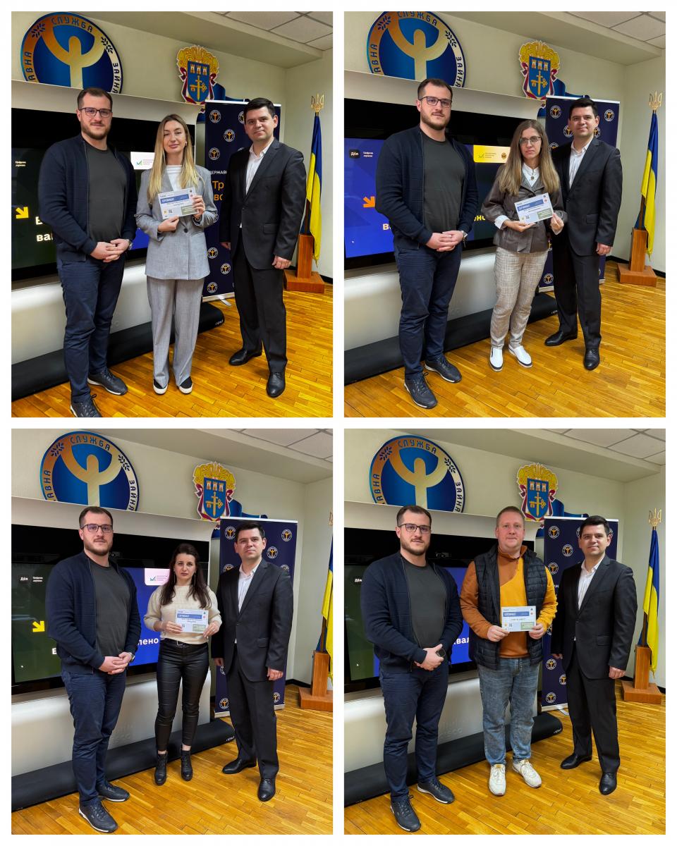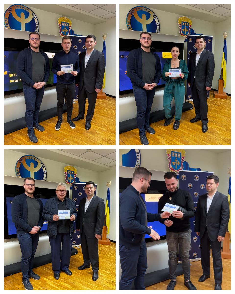 Сертифікати переможцям даних хвиль вручили перший заступник голови Тернопільської обласної військової адміністрації Степан Куйбіда та директор Тернопільського обласного центру зайнятості Микола Городецький.