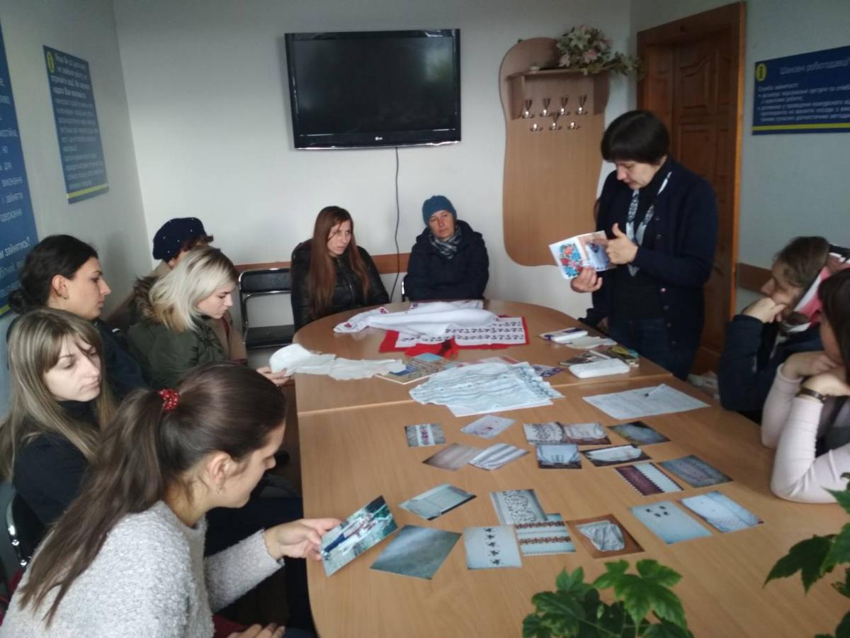 26 жовтня 2018 року у Бережанській районній філії Тернопільського обласного центру зайнятості відбулося чергове засідання жіночого клубу «Берегиня» на тему: «Зустріч з майстринею-вишивальницею». До участі у засіданні клубу працівники служби зайнятості запросили Наталію Стрілець наукового співробітника обласного комунального музею Богдана Лепкого в м. Бережани.