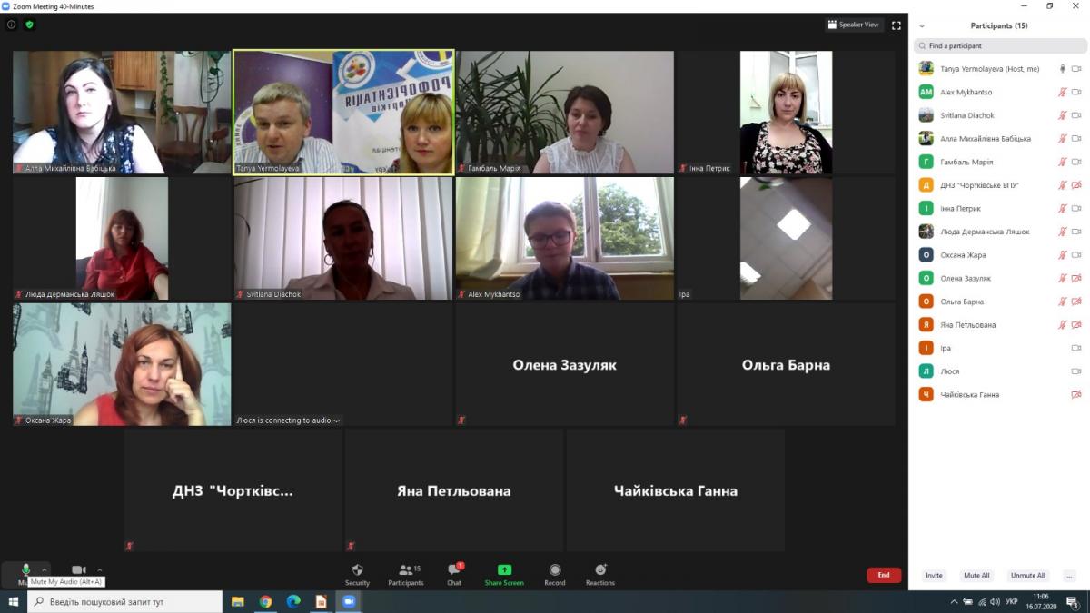 Провідний фахівець з профорієнтації відділу активної підтримки безробітних Ірина Боднар поінформувала присутніх про широкий спектр профорієнтаційних послуг служби зайнятості, у т.ч. онлайн; сучасні електронні сервіси Державної служби зайнятості: платформа профорієнтації та розвитку кар’єри, платформа «Моя професія: консультаційна мережа», Освітній портал; про проведення інформаційних та консультаційних вебінарів.