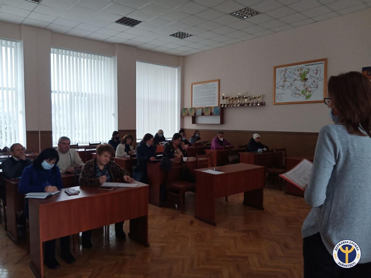 Начальник відділу взаємодії з роботодавцями Теребовлянської районної філії Тернопільського обласного центру зайнятості Надія Папа та провідний юрисконсульт райфілії ОЦЗ Галина Оліяр провели інформаційний семінар вивільнюваним працівникам Теребовлянської РДА.