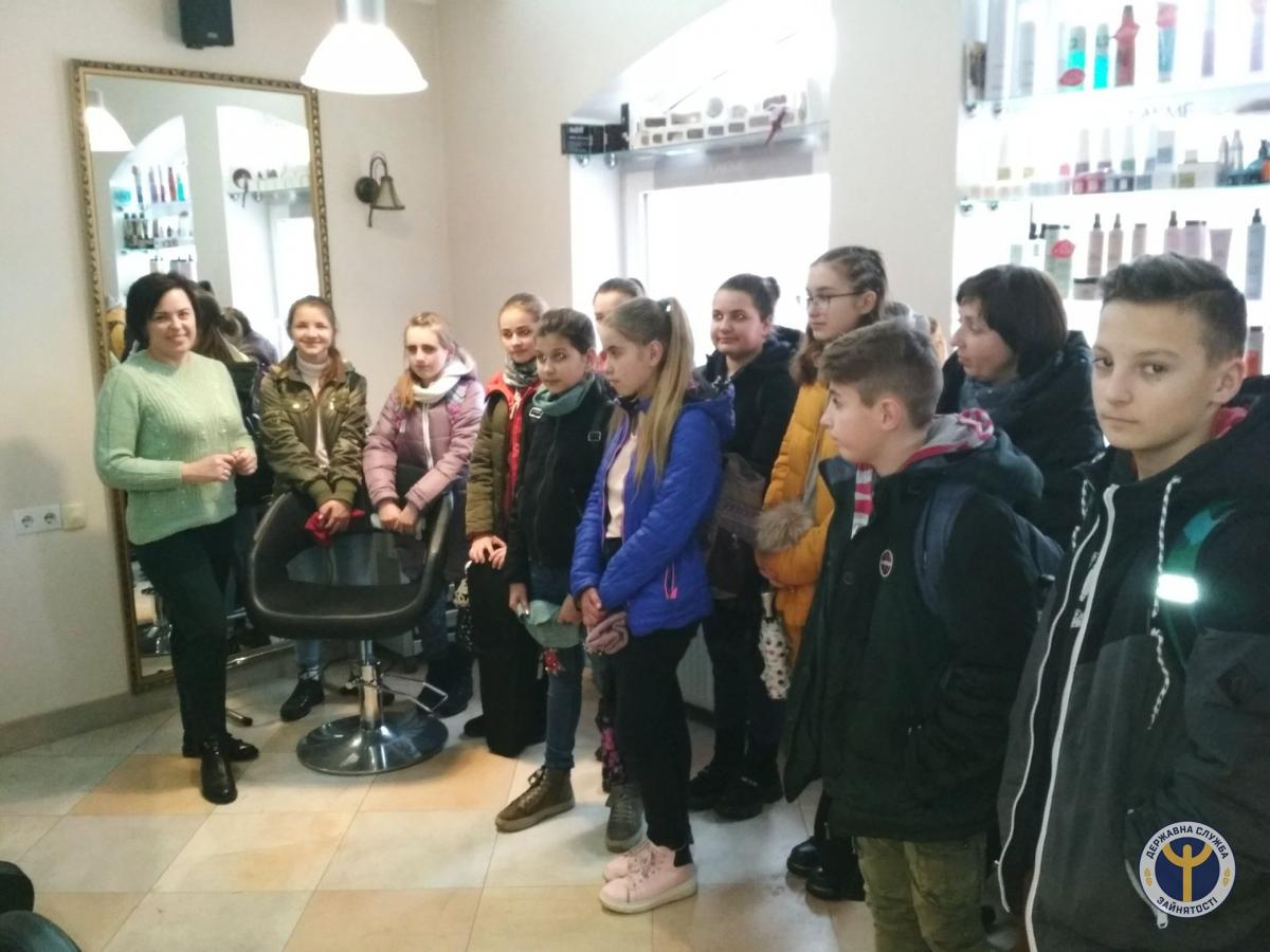 Школярі Бережанської гімназії імені Богдана Лепкого відвідали одну з найкращих перукарень міста - перукарню «Наталі». Екскурсію організували фахівці Бережанської районної філії Тернопільського обласного центру зайнятості, щоб ознайомити школярів з найвідомішими професіями сфери обслуговування - „перукар”, «манікюрниця», «візажист», «адміністратор».