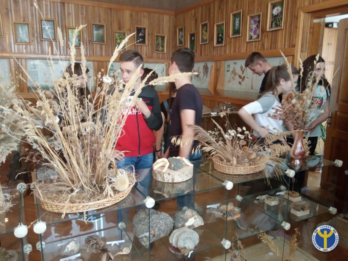 Діти з цікавістю відвідали музей природи, що діє у заповіднику оглянули зібрані у ньому експонати (опудала, гнізда, гербарій, колекція деревних та кущових порід, зразки рослин, геологічна колекція).