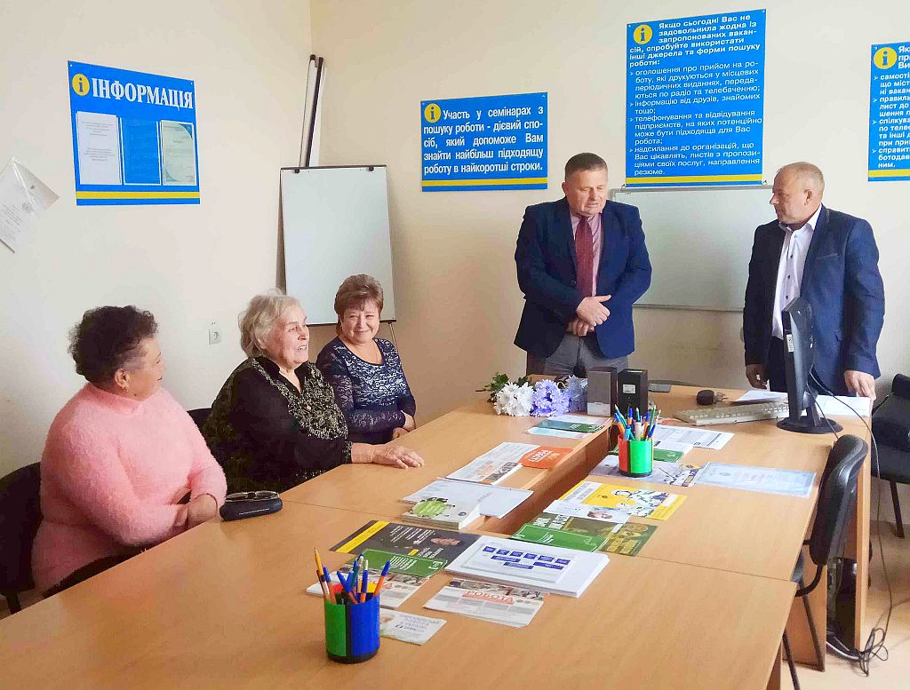 Так, у Збаразькій районній філії Тернопільського ОЦЗ директор обласного центру зайнятості Василь Олещук та директор районної філії ОЦЗ Василь Коваль зустрілися із колишніми працівниками – ветеранами служби, та вручили Подяки за багаторічну та старанну роботу Рудик Пелагії Михайлівні, Равлик Ярославі Василівні, Кадюк Ларисі Володимирівні.