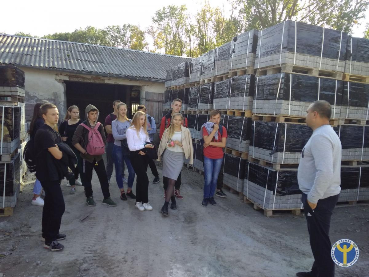 Діти побачили технологію виробництва бруківки, тротуарної плитки, дізнатися, які витратні матеріали необхідні для виготовлення бетонної продукції, ознайомитися із роботою вібропресу, бетонозмішувача. Пан Володимир пояснив, що виробництво здійснюється на технологічних лініях автоматизованого обладнання, яке обслуговують 2-3 чоловік. Він також додав, що на допомогу людям необхідно мати навантажувач.