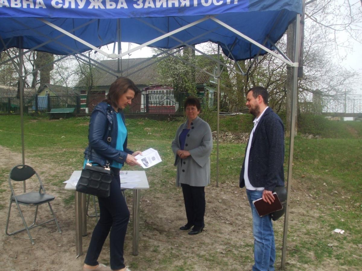 Під час спілкування з населенням фахівці районної філії надали консультації щодо можливості працевлаштування, отримання ваучерів для підтримки конкурентоспроможності осіб на ринку праці, участі в громадських та інших роботах тимчасового характеру, про можливість проходження професійного навчання, в тому числі на базі центрів професійно-технічної освіти державної служби зайнятості.