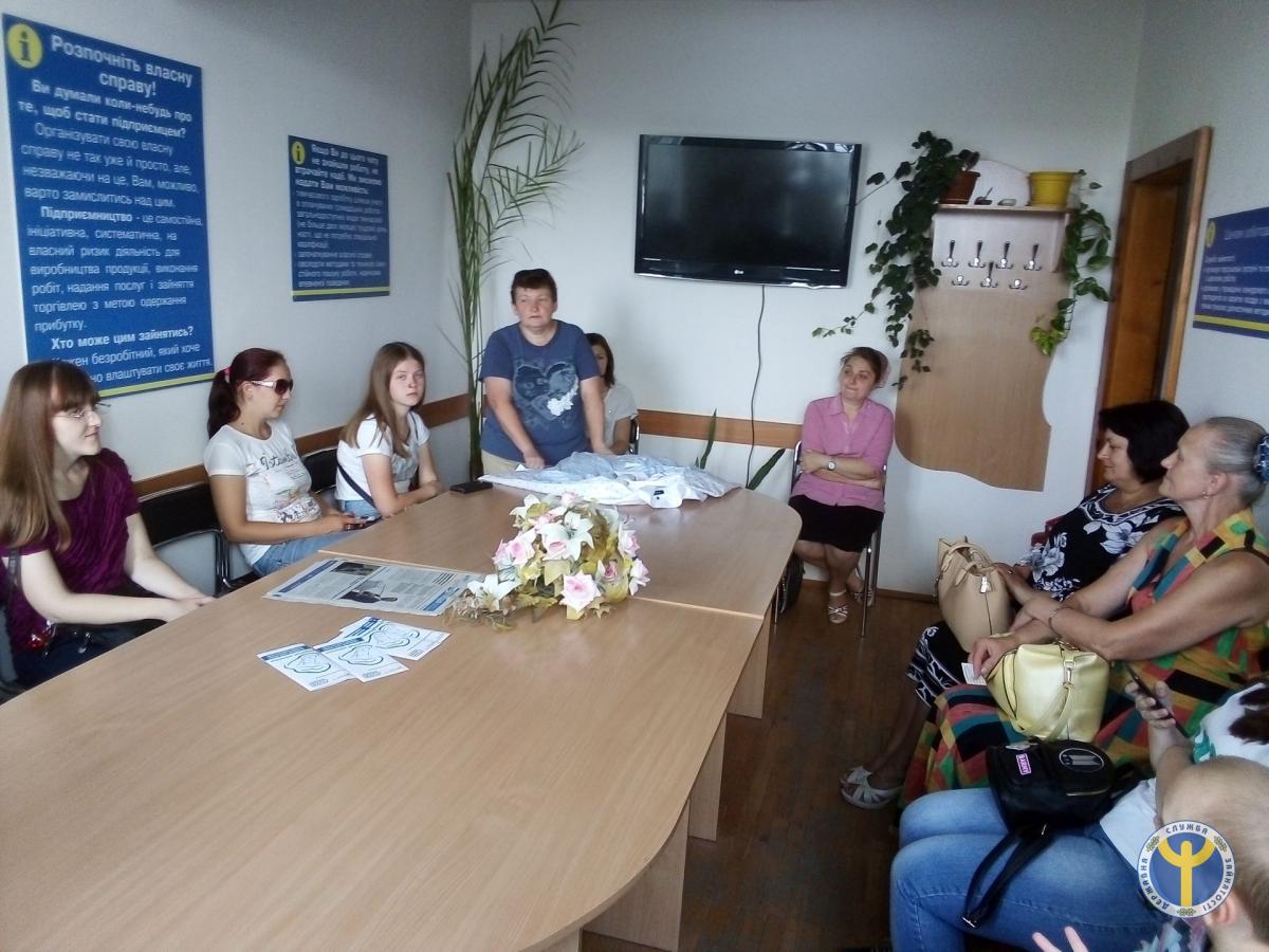 Участь у заході взяла заступник директора товариства Світлана Чавлюк. Вона розповіла про вакансії даного підприємства, а саме: прасувальник, термообробник швацьких виробів та швачка, детально ознайомила присутніх з умовами та режимом праці, пакетом соціальних послуг та оплатою праці в товаристві, можливостями навчання та кар’єрного росту.