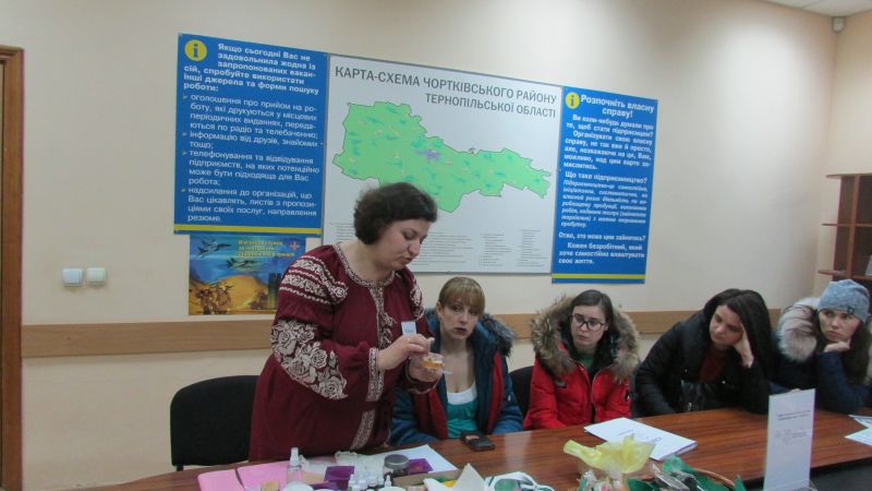 На базі Чортківської районної філії Тернопільського обласного центу зайнятості відбувся майстер-клас із миловаріння у рамках засідання клубу для молоді «Шлях до успіху» за участю майстрині Олесі Токарь.