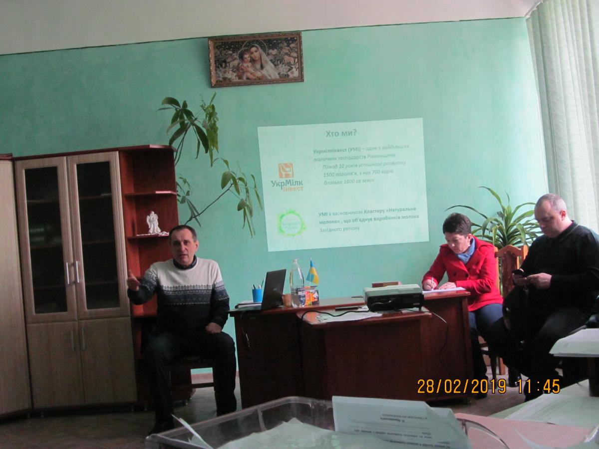 Дорадник проекту Олександр Березюк розповів, що ТОВ  «Укрмілкінвест» є одним із найбільших молочних господарств Рівненщини  (1500 голів ВРХ, сучасні технології тваринництва) та являється ініціатором проекту «Відкриття сімейних молочних ферм», який здійснюється за прикладом реалізованого у Львівській області спільного проекту Львівської аграрної дорадчої служби та Уряду Канади. Даний Проект передбачає підтримку тим, хто хоче відкрити власну міні-ферму з 10 корів, і тим самим створити сприятливе бізнес-середовище для інших інвесторів. «Укрмілкінвест» має можливість інвестувати кошти в будівництво або реконструкцію приміщення, придбання ВРХ, обладнання, здійснювати повний технологічний супровід.