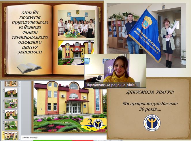 21 грудня 2020 року з нагоди 30-річниці створення Державної служби зайнятості за допомогою сервісу Zoom фахівці провели онлайн-екскурсію Підволочиською районною філією Тернопільського обласного центру зайнятості.