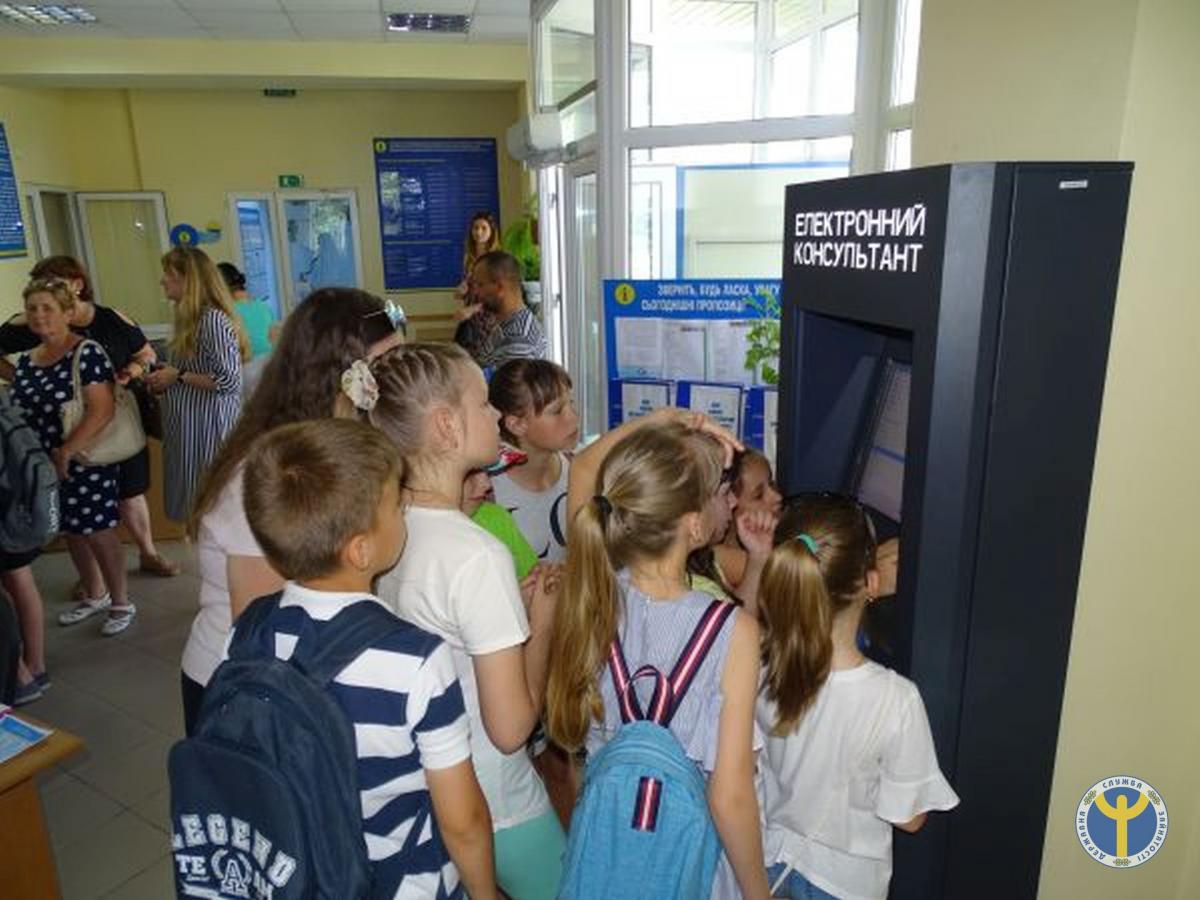 Учасникам заходу була проведена цікава екскурсія. Школярі ознайомилися з роботою адміністратора-реєстратора, кар’єрних радників та інших фахівців, які працюють в районній філії. Учням дуже сподобався інформаційний сектор, в якому вони ознайомились із різноманіттям професій, переліком актуальних та найбільш оплачуваних вакансій у службі зайнятості, а також модернізованим інформаційним терміналом з безліччю корисної інформації для різних категорій населення.