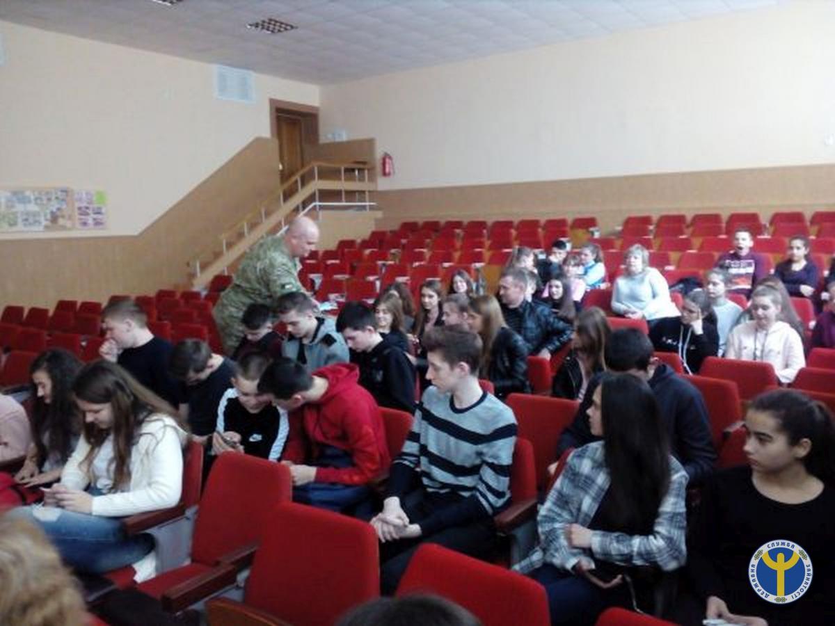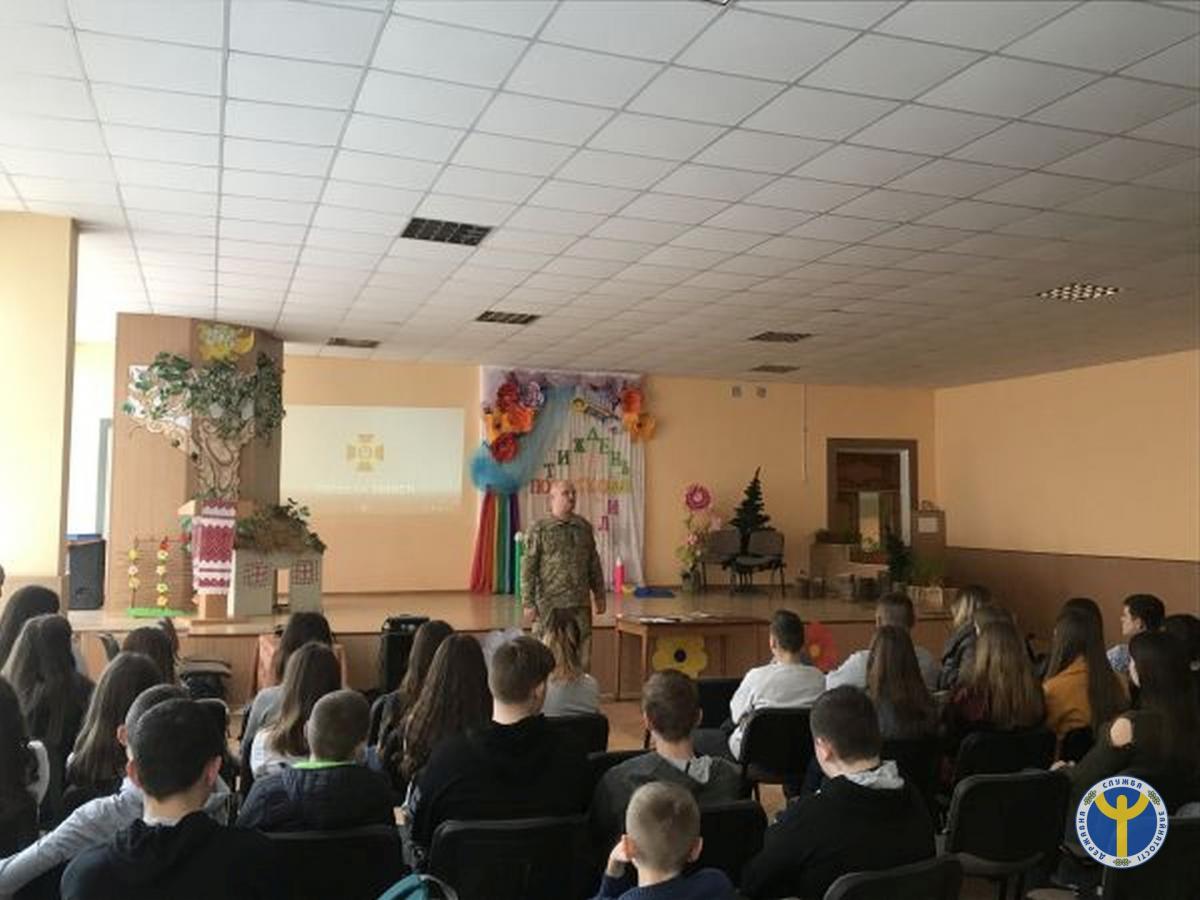 Він ознайомив учнівську молодь із завданнями Державної прикордонної служби, надав інформацію що до призову на строкову службу, військову службу за контрактом в Державній прикордонній службі України. Поділився інформацією щодо умов вступу та навчання у Національну академію прикордонної служби України у м. Хмельницький. Назвав основні переваги військового навчального закладу, закінчивши навчальний заклад усім його випускникам гарантується працевлаштування.