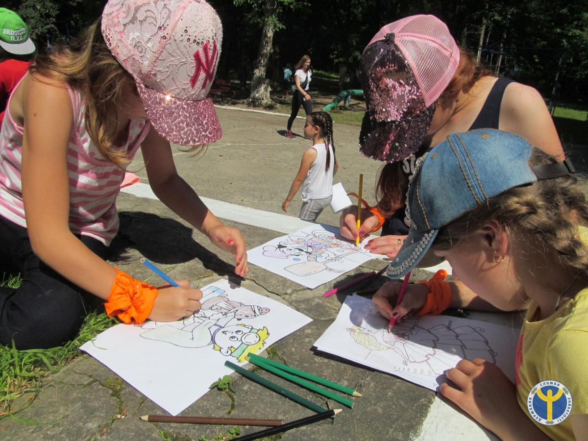 Діти відгадували загадки про професії, розв’язували кросворди, доповнювали прислів’я, розмальовували зображення майбутньої професії, створювали малюнки на асфальті, брали участь в рухливих іграх.