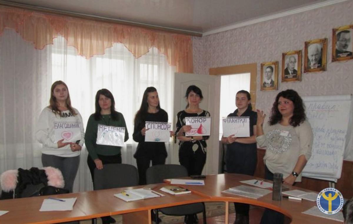 Учасники тренінгу активно брали участь у грі «Креатив», в інтерактивних вправах «Хто я?», «Де взяти гроші?». Дізнавались хто такі потенційні фінансові партнери: благодійник, спонсор, меценат, філантроп, донор та які у них мотиви. Учасники дійшли висновку, що процес залучення ресурсів для втілення проєкту передбачає, поряд із залученням грошових коштів, також інших ресурсів, а саме людських, інформаційних, матеріальних, без яких не можливо реалізувати певний проєкт. Взагалі, процес пошуку ресурсів може забрати багато часу і передбачає здійснення багатьох кроків, але потрібно пам’ятати, що не існує ніякої «магічної формули» для їх успішного залучення, просто треба бути наполегливим у своєму бажанні діяти.