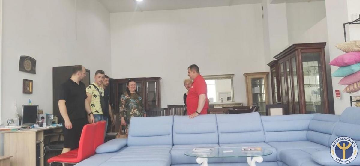 Екскурсію по усіх виробничих цехах провела головна бухгалтерка підприємства Ірина Романів. Вона коротко розповіла історію створення фабрики, яка спеціалізується на виробництві м’яких меблів, здобутки та досягнення, з гордістю показала фірмовий магазин з готовою продукцію, яка користується попитом на ринку України та за її межами. Розповіла про вакантні посади, а саме: столяра, оббивальника меблів, швачки; поінформувала про оплату праці та соціальний захист працівників, про можливість проходження стажування на підприємстві. Дала вичерпні відповіді на запитання безробітних, щодо можливості працевлаштування.