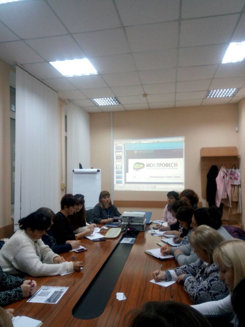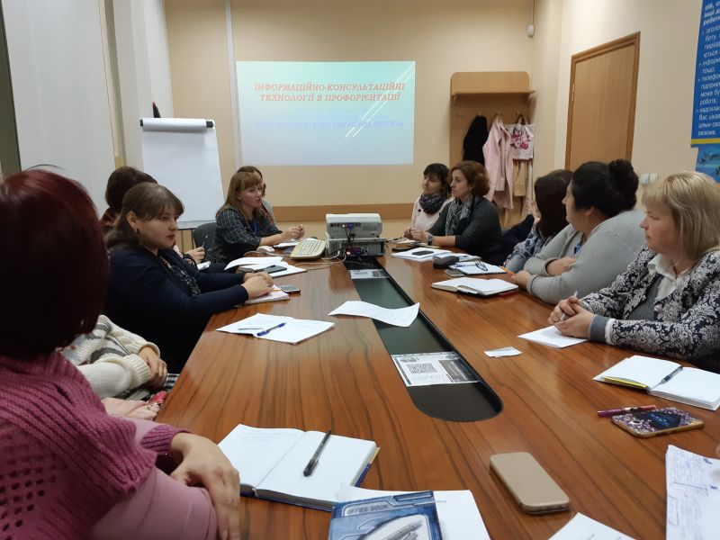 Фахівці з профорієнтації районної філії за допомогою мультимедійного проектора презентували онлайн-платформу “Моя професія. Консультаційна мережа”, метою якої є надання послуг з профорієнтації у дистанційному режимі як старшокласникам, які ще тільки стоять на порозі професійного вибору, так і дорослим, котрі бажають змінити професію. Тестування проводиться за стандартизованими перевіреними методиками та дає можливість пізнати свої професійні інтереси та цінності, рівень розвитку інтелекту (IQ) та психологічні особливості.