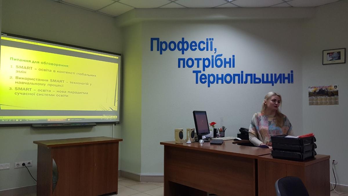 Питання «SMART-освіта: сучасні тренди» висвітила Тетяна Дракохруст – кандидат наук з державного управління, доцент кафедри міжнародного права, міжнародних відносин та дипломатії ТНЕУ. Вона розповіла, що SMART-освіта – це застосування в освітніх цілях смартфонів, планшетів, інтерактивних дошок – смартбордів, інших пристроїв із доступом до інтернету, а також різноманітних навчальних програм та додатків (Google Site, Padlet, Doodle, Evernote, Google Диск, Anymeeting), в тому числі безкоштовних.