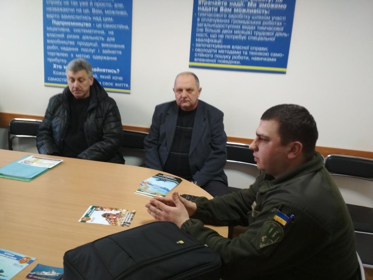 Фахівці Бережанської районної філії Тернопільського обласного центру зайнятості провели інформаційний семінар з орієнтації на службу в Збройних Силах України, за участю представника 80-ї окремої десантно-штурмової бригади м. Львів Валерія Якобчука та провідного спеціаліста відділення комплектування Бережанського ОМВК Михайла Леськів.