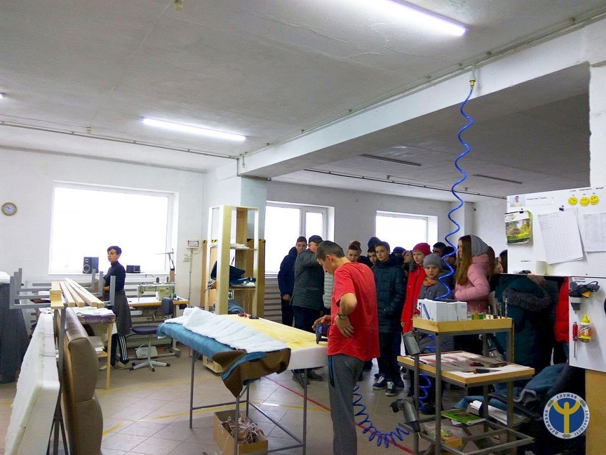 У швейному цеху школярам показали різні способи швів та крою, які використвують в процесі створення оббивальних матеріалів для меблів.
