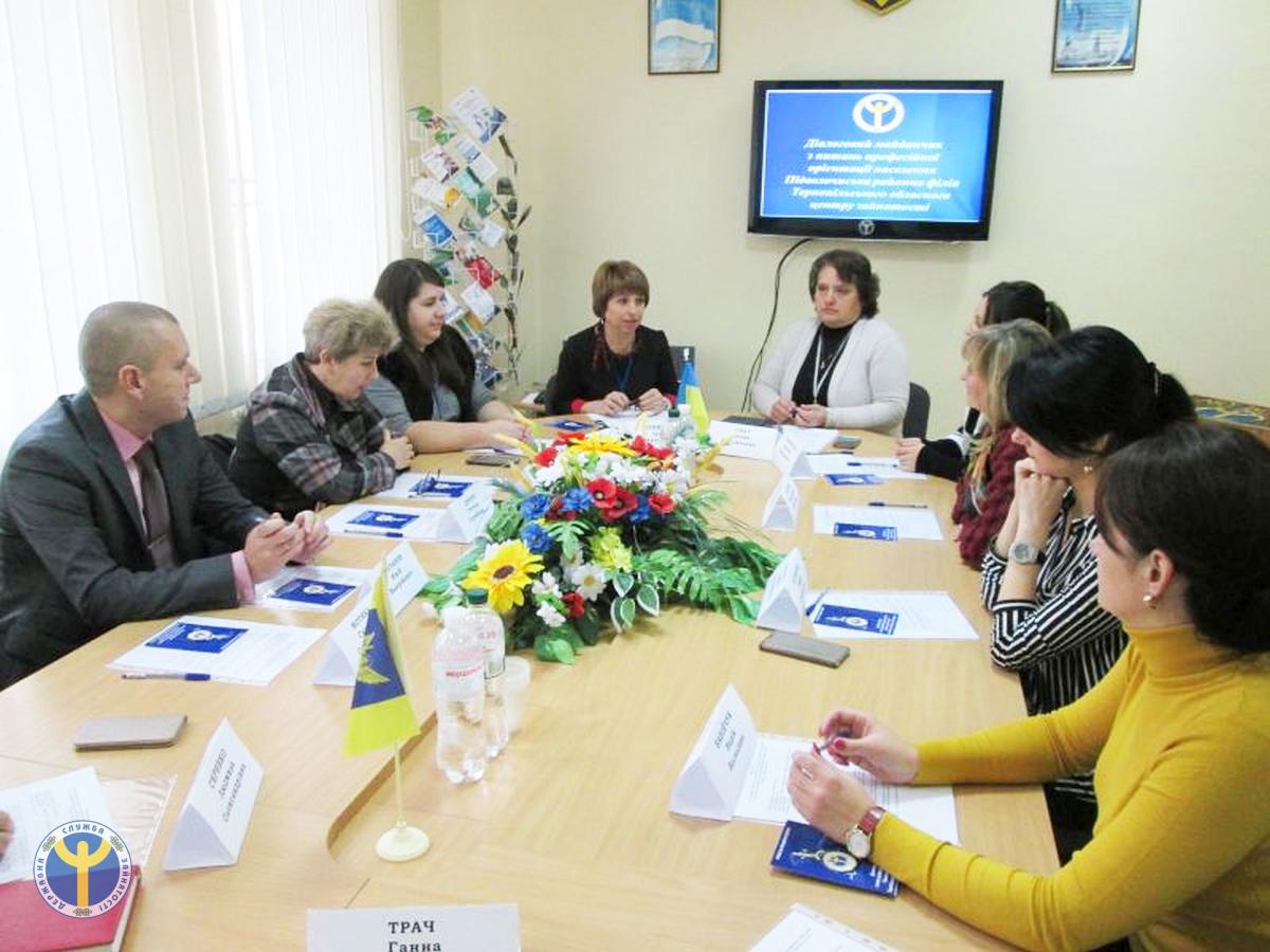 У Підволочиській районній філії Тернопільського обласного центру зайнятості відбулося ІІІ засідання діалогового майданчика з питань профорієнтації за участю представників - соціальних партнерів служби зайнятості: Підволочиської РДА, Підволочиської селищної ради, відділів освіти Підволочиської селищної ради; Скалатської міської ради; Скориківської та Новосільської сільських рад, Підволочиської ЗОШ №1 та Скориківської ЗОШ (опорних закладів), ДНЗ «Скалатський професійний ліцей» та «Підволочиський професійний ліцей», Підволочиської централізованої бібліотечної системи, ТОВ «Редакція газети «Гомін Волі», ТОВ «Україна».