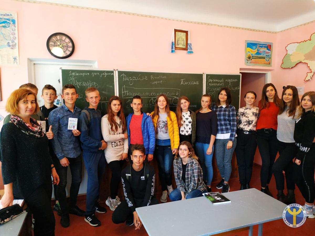 Фахівець райфілії розповіла учням про те, як зорієнтуватися у складному лабіринті професій, уникнути помилок і розчарувань при виборі професій. Діти розбирали ситуації, що стосуються професійного вибору. На завершення Леся Король ознайомила учнів з Платформою профорієнтації та розвитку кар’єри Державної служби зайнятості, за допомогою якої учні можуть визначити свої професійні схильності.