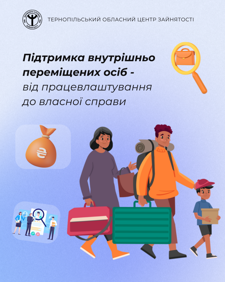Служба зайнятості Тернопільщини продовжує здійснювати комплекс заходів, спрямованих на підтримку внутрішньо переміщених осіб, зокрема з початку року її послугами скористались 1,5 тис. внутрішньо переміщених осіб, з них 1005 мали статус зареєстрованих безробітних, що свідчить про активну підтримку у сфері працевлаштування, професійного навчання, започаткування підприємницької діяльності та залучення до тимчасової зайнятості.