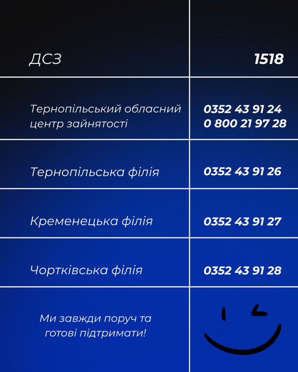 Тернопільський обласний центр зайнятості працює за новими контактними номерами.
