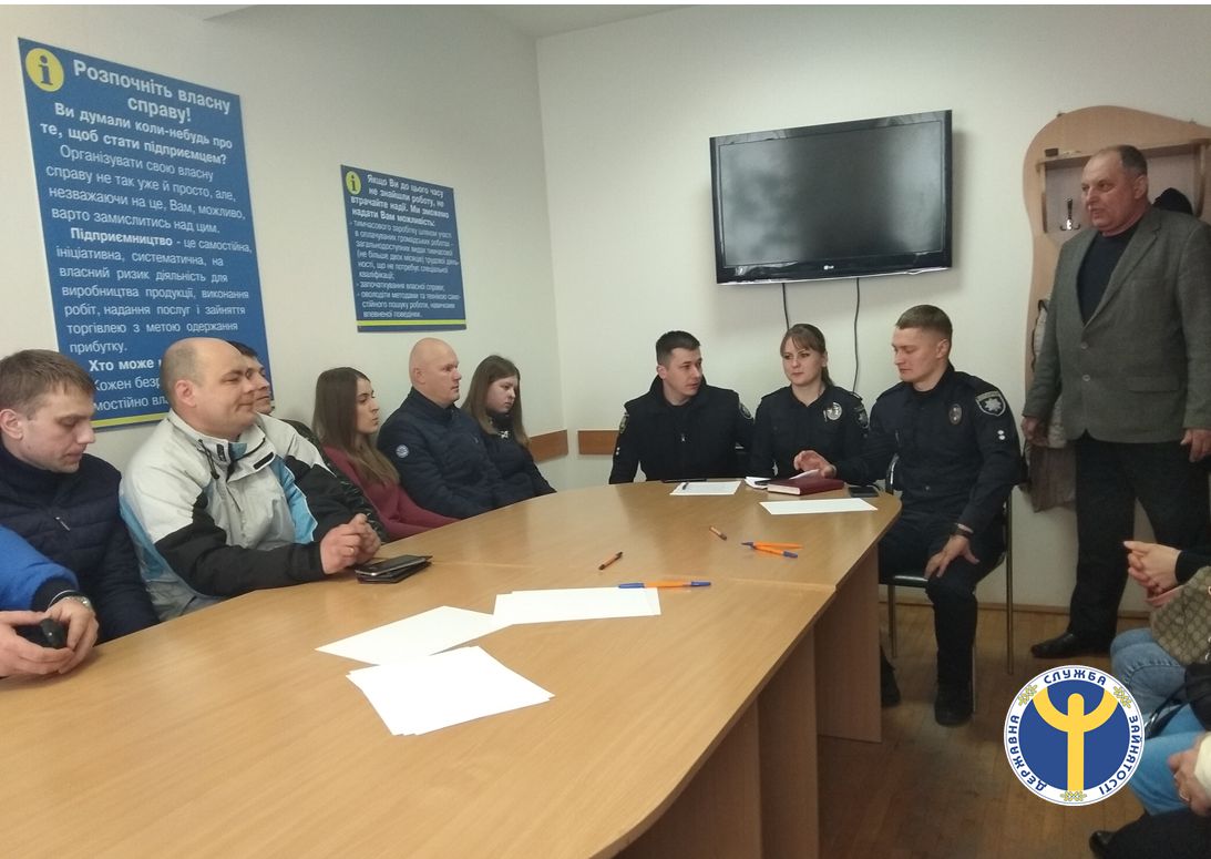 Інспектори із зв’язку з громадськістю УПП у Тернопільській області Ігор Івасів, Олександра М’ялковська та Ігор Ракочий ознайомили безробітних з вакантними посадами інспекторів патрульної поліції, вимогами до кандидатів, які будуть брати участь у конкурсі на вакантні посади.
