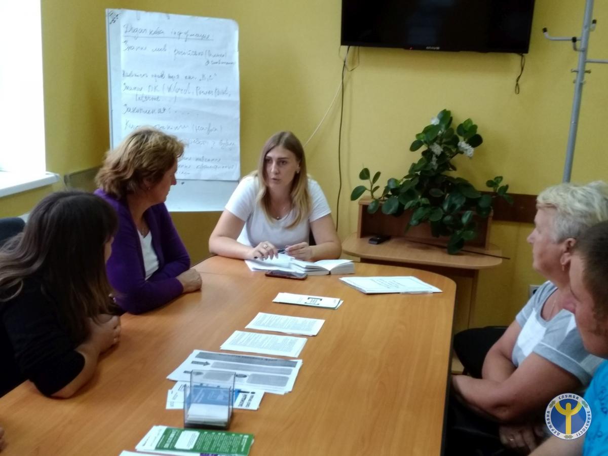 Фахівець райфілії ОЦЗ поінформувала про послуги служби зайнятості щодо сприяння малому підприємництву та самозайнятості, найбільш конкурентоспроможні напрямки діяльності, зокрема такі як розведення равликів, вирощування та збір лікарських рослин, ягід та фруктів, створення сімейних молочних ферм, відгодівля та продаж молодняку, птахівництво, риборозведення тощо.