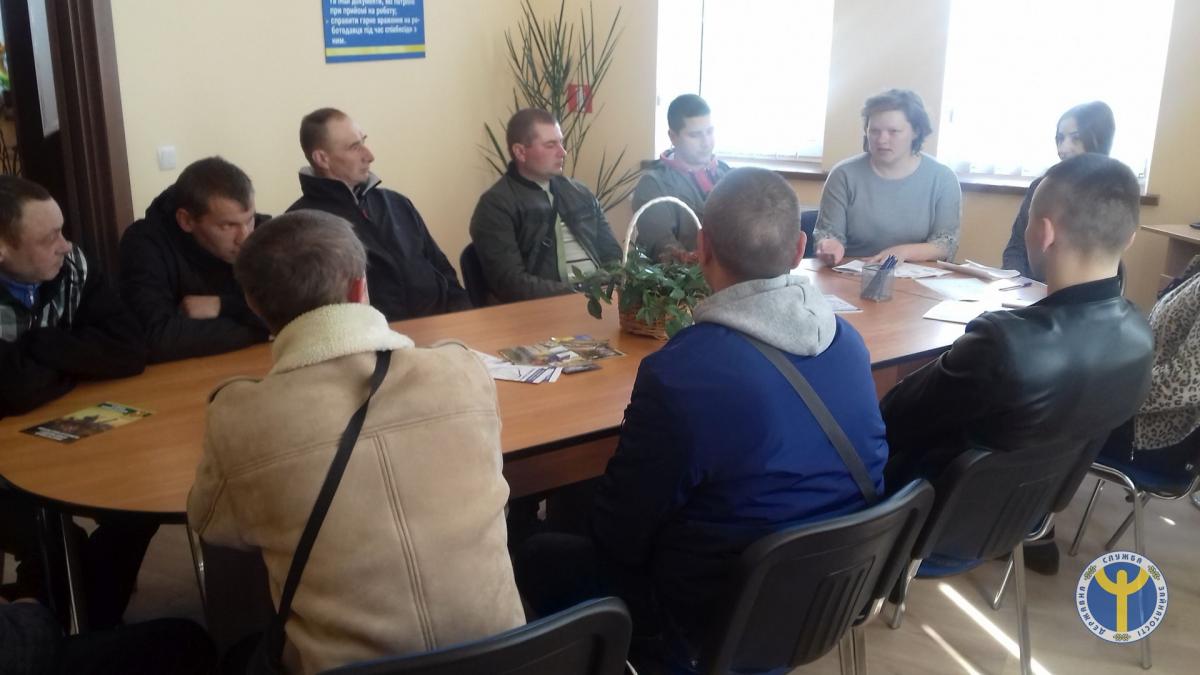 Начальник відділу активної підтримки безробітних рай філії ОЦЗ Леся Король ознайомила присутніх із Дорожньою картою учасника АТО та надала інформацію про стан ринку праці та соціальні послуги, які надає служба зайнятості.