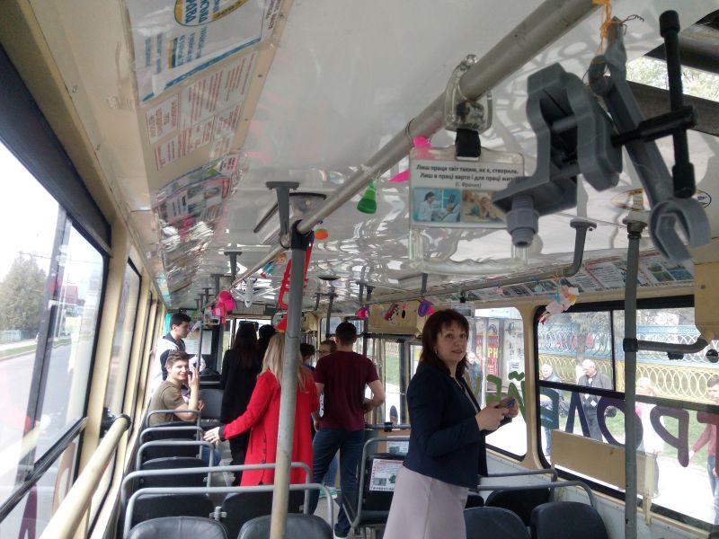 Тернополяни та гості міста подорожуватимуть у позитивній атмосфері кольорових та сонячних ілюстрацій професій, розміщених по салону транспортного засобу.