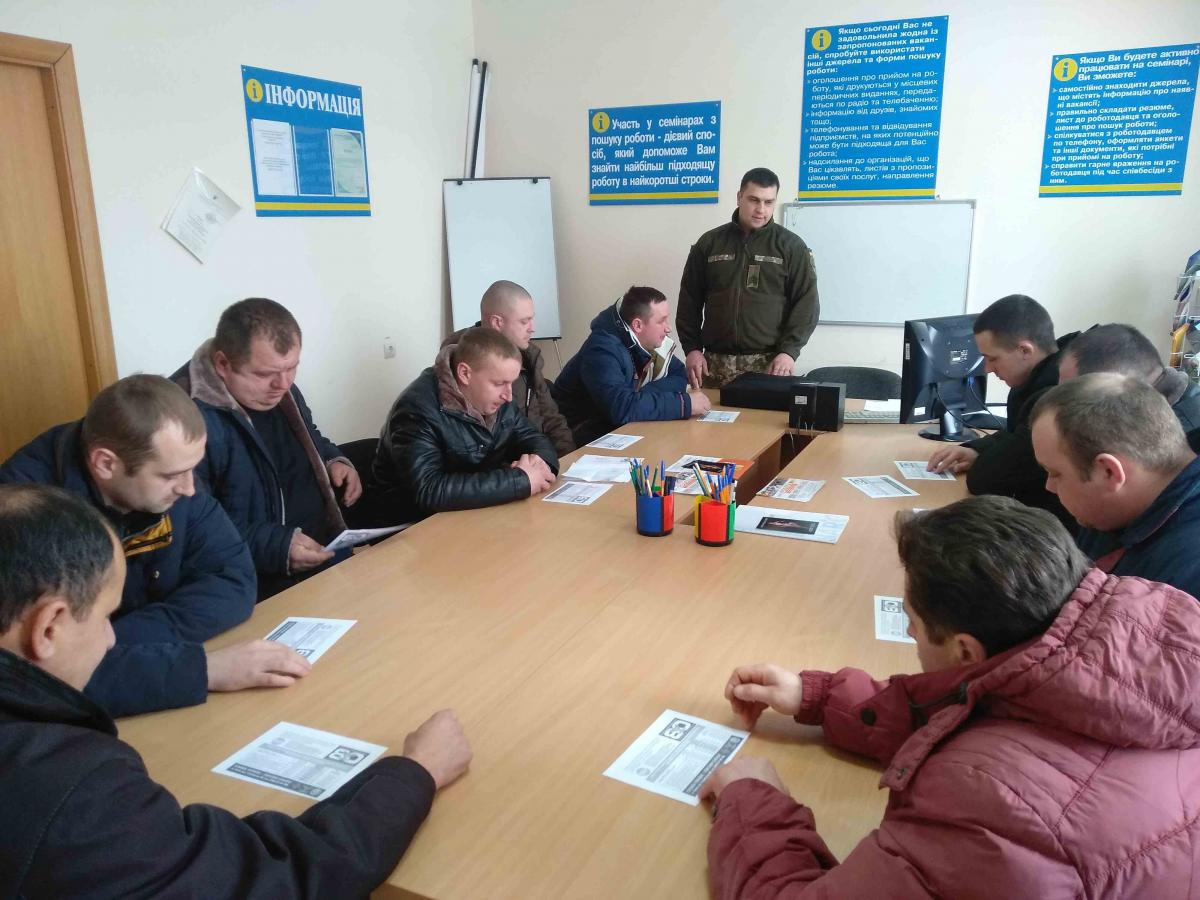 Фахівці Збаразької районної філії Тернопільського обласного центру зайнятості провели семінар з орієнтації на службу в Збройних Силах України для безробітних військовослужбовців та учасників АТО.