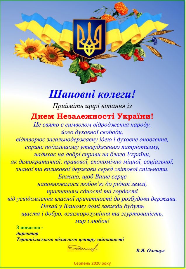 Вітаємо з Днем незалежності України!