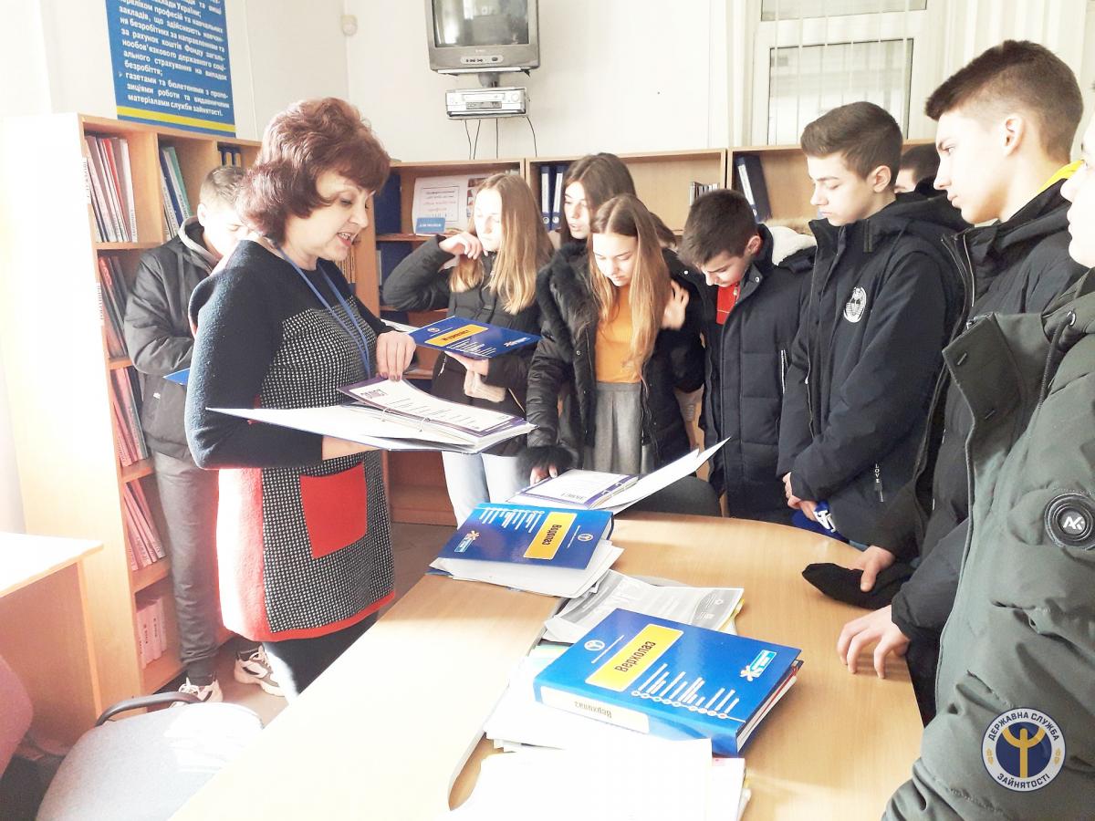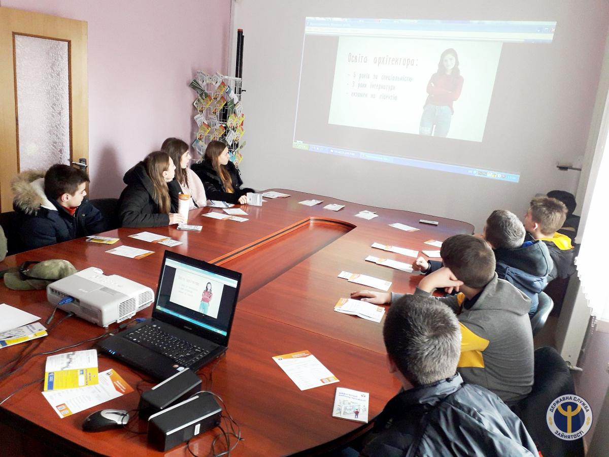 Школярі ознайомились з інформаційними папками із описом професій та «Навігатором вибору професії»; переглянули відеоролики професійного спрямування; отримали інформацію щодо проходження профорієнтаційного тестування на платформі «Моя професія: консультаційна мережа»; дізнались про освітній портал державної служби зайнятості.