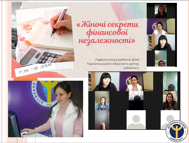 «Жіночі секрети фінансової незалежності» таку тему обговорили на засіданні жіночого клубу «Надзбручанка», що діє у Підволочиській районній філії Тернопільського обласного центру зайнятості за допомогою онлайн-сервісу «Zoom», за участю начальниці Підволочиського б'юро безоплатної правової допомоги Андріани Левак.