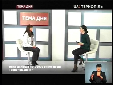 30-хвилинна програма «Тема дня» на телебаченні «UА:Суспільне. Тернопіль» 10.03.2020 «Яких фахівців потребує ринок праці Тернопільщини?» за участю заступника директора Тернопільського ОЦЗ Олександри Островської.