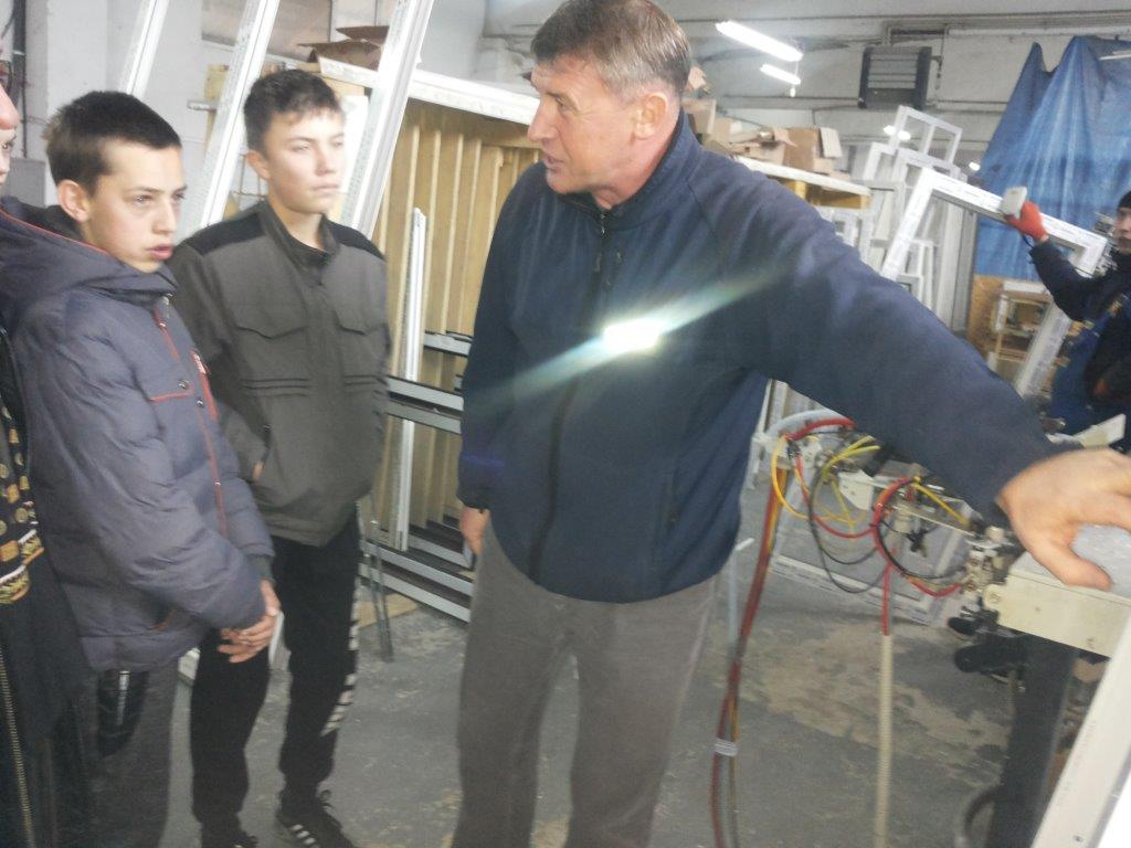 Власник підприємства Григорій Тигач провів екскурсію цехами, ознайомив учнів зі специфікою виготовлення пластикових конструкцій, розповів про організацію виробництва, умови праці, професії, представлені на підприємстві.