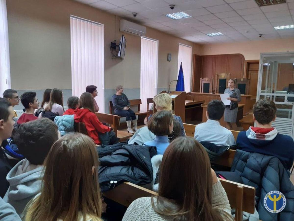 Під час заходу дев'ятикласникам провели екскурсію в приміщенні суду,а саме відвідали канцелярію, зал судових засідань, мали можливість задавати питання та отримувати кваліфіковані відповіді. Також школярі були ознайомлені із сучасними технологіями дистанційних судових засідань в режимі відеоконференцій.