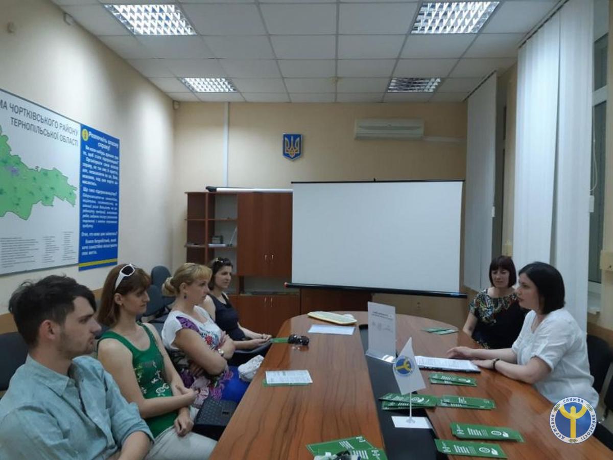 З такою метою, в Чортківській районній філії Тернопільського обласного центру зайнятості відбулося чергове засідання клубу для молоді «Шлях до успіху» на тему: «Знання прав та обов`язків – успіх у житті», на яке була запрошена Олена Овсинська, начальник відділу правопросвітництва та взаємодії із суб’єктами надання безоплатної первинної правової допомоги Чортківського місцевого центру надання безоплатної вторинної правової допомоги.